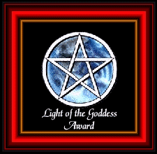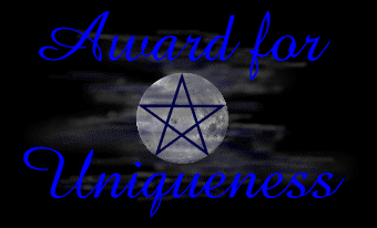Your site is awesome!!! There are a million sites on the web that are Wiccan/Pagan/Witch in origin but so many of them are just thrown together and never shine with the light of the Goddess. Yours truly does shine with Her light and beauty. I can not begin to tell in words the peace and beauty that I felt as I walked through all of your pages. Yours is a site that indeed should have people visit. I would be more than honored if you would please accept my award for the Award of Uniqueness, Light of the Goddess